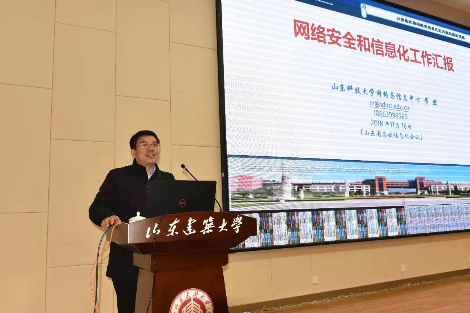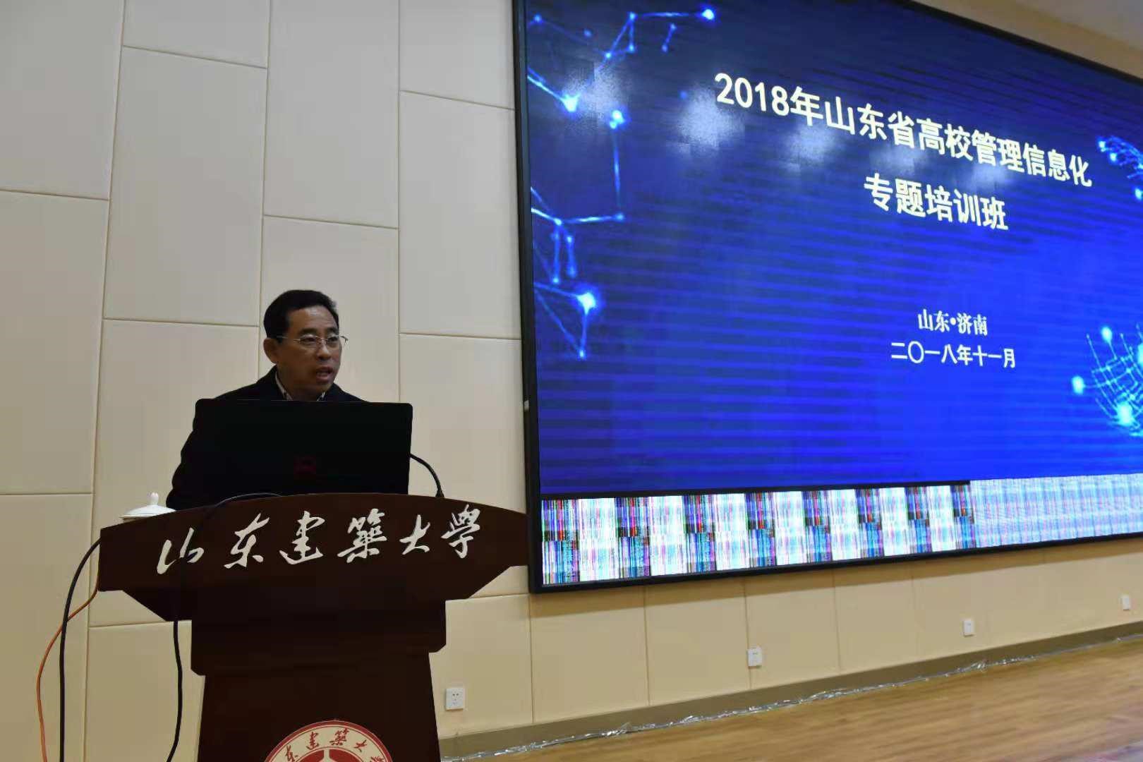 11月16日上午,培訓班現場經驗交流和分享會在山東建筑大學博學會堂召開,山東建筑大學校長靳奉祥教授到會并致歡迎詞。靳奉祥在致辭中感謝教育廳對我校信息化建設成果的認可,對各位領導、專家以及各高校信息化負責人的到來表示熱烈歡迎,并簡要匯報了近幾年來我校信息化建設取得的成果。