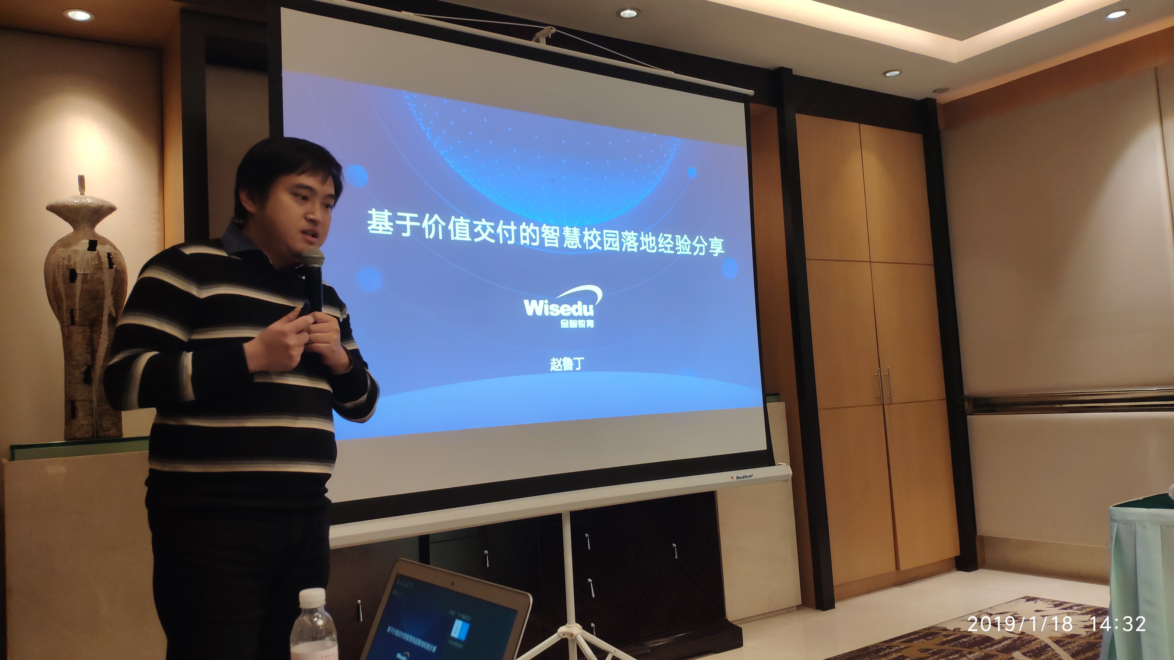 本次會議主要介紹金智教育在2019年智慧校園應用的建設方案和思路以及具體的產品研發進展。首先,金智教育平臺與云交付產品事業部市場經理趙魯丁介紹了基于價值交付的智慧校園落地的經驗進行分享。同時指出現在的項目化產品交付存在很多的問題,不敢見、投入大、門檻高、周期長和不可控等問題。金智教育平臺與云交付產品事業部營銷經理李晨介紹了金智教育在移動校園方面的多種服務模式,并就saas服務模式進行了詳細探討。