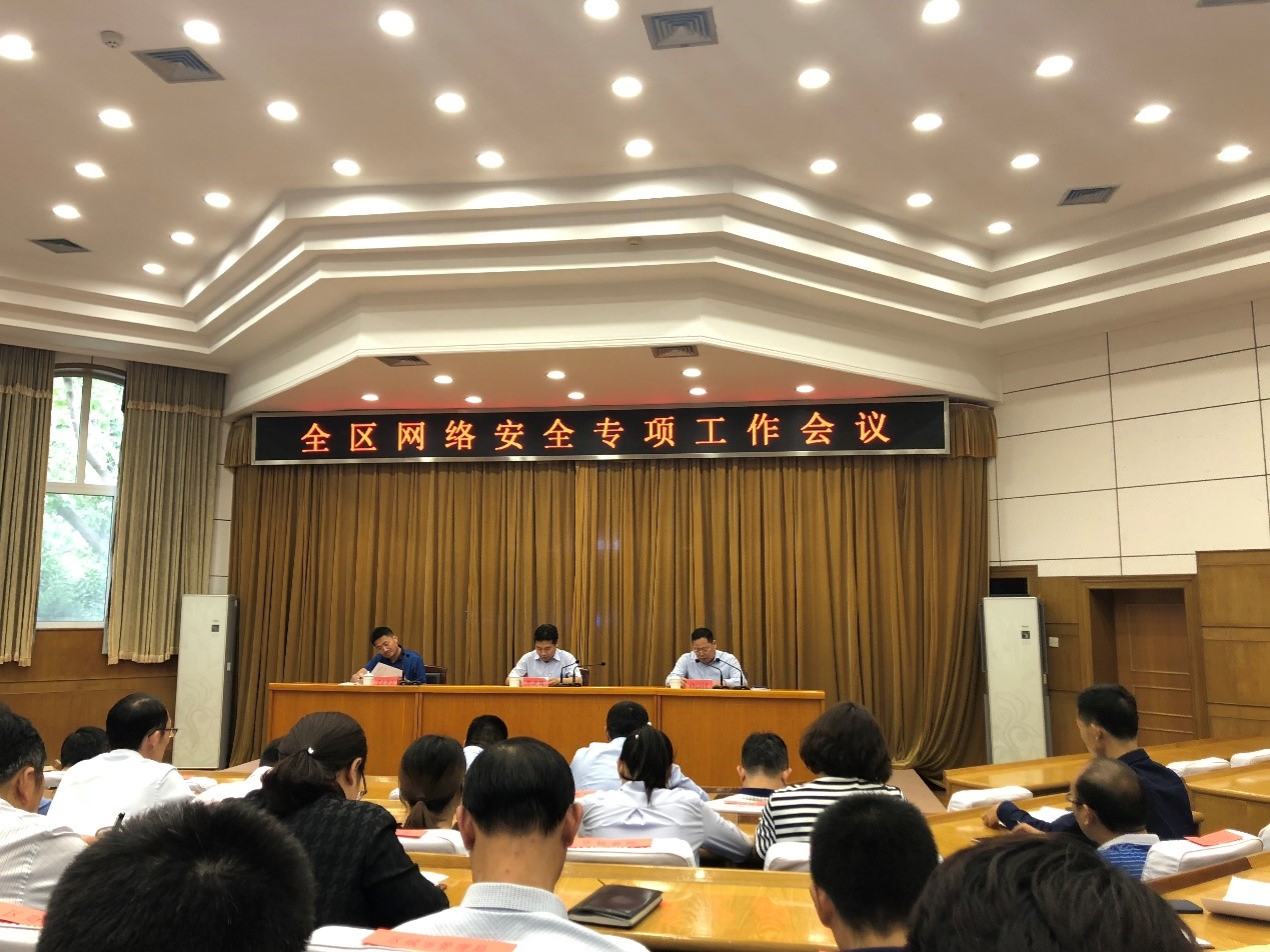 2018年5月25日上午,全區網絡安全專項工作會議在城陽區會堂第二會議室召開,城陽區副區長畢建國作了重要指示,城陽公安分局、區政府辦公室相關負責人部署了相關工作,城陽區各大局委、住區院校、銀行、電力、燃氣、大企業等單位的相關人員參加了會議。
