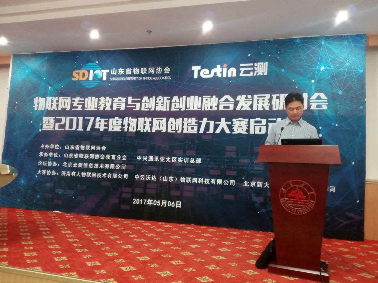 2017年5月6日,山東省物聯網專業教育與創新創業融合發展研討會在濟南召開。此次會議由山東省物聯網協會主辦,山東省物聯網協會教育分會承辦。全省教育分會會員;相關高校分管副校長、教務處長、院系負責人、學生處處長、物聯網學科帶頭人和企業代表參加會議。