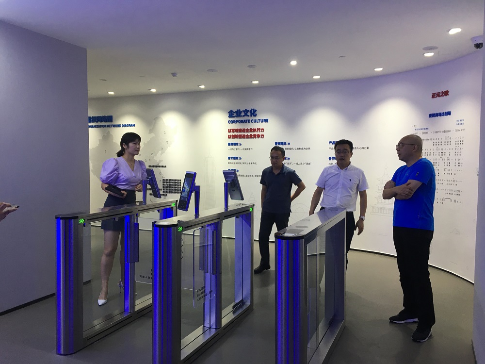 中心一行隨后實地考察了正元智慧公司的體驗中心,對公司的道閘、門禁、刷卡機、人臉誰別、智能門鎖等全系列產品進行了詳細的調研和考察。