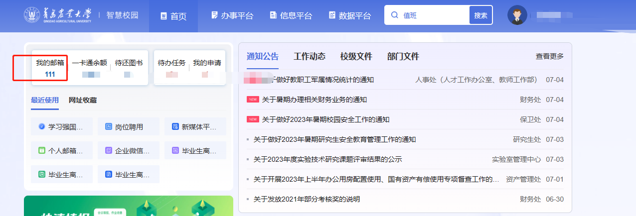 (1)使用個人賬戶登錄青島農業大學智慧校園門戶